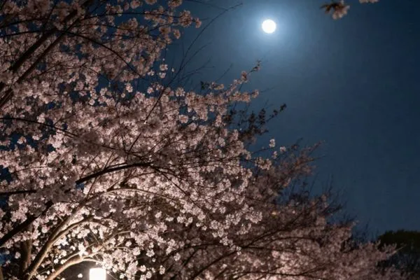 大池公園桜まつりのもう一つの主役が、夜の園内を幻想的に彩る「ライトアップ」です。夜桜と屋台グルメの相性は抜群ですよ!